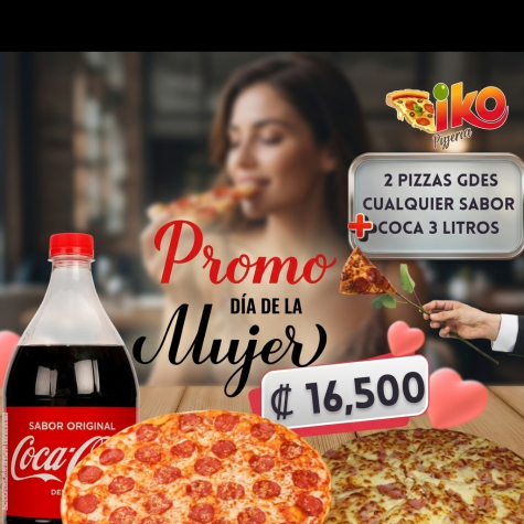 Pizza grande 16 slices (HAWAIANA, SUPREMA, AMERICANA, ITALIANA, JAMÓN Y QUESO, PEPERONI, JAMÓN Y HONGOS o mitad Y mitad) + te frío 3 lts + 1/4 de helado ₡10,800 precio exclusivo para pedidos en linea, No WhatsApp, ni llamadas.